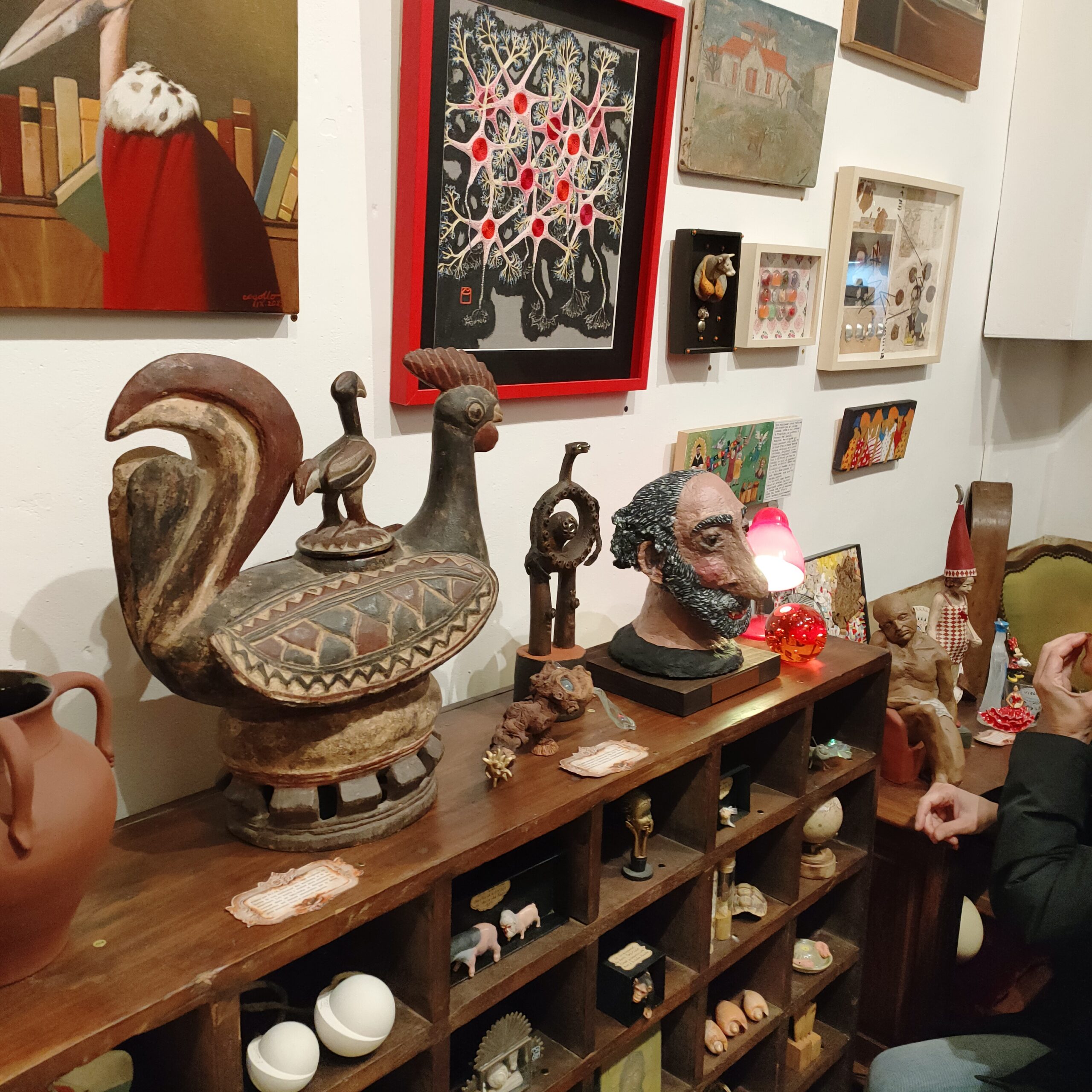 Sculptures bois /terre à l’honneur, peintures.