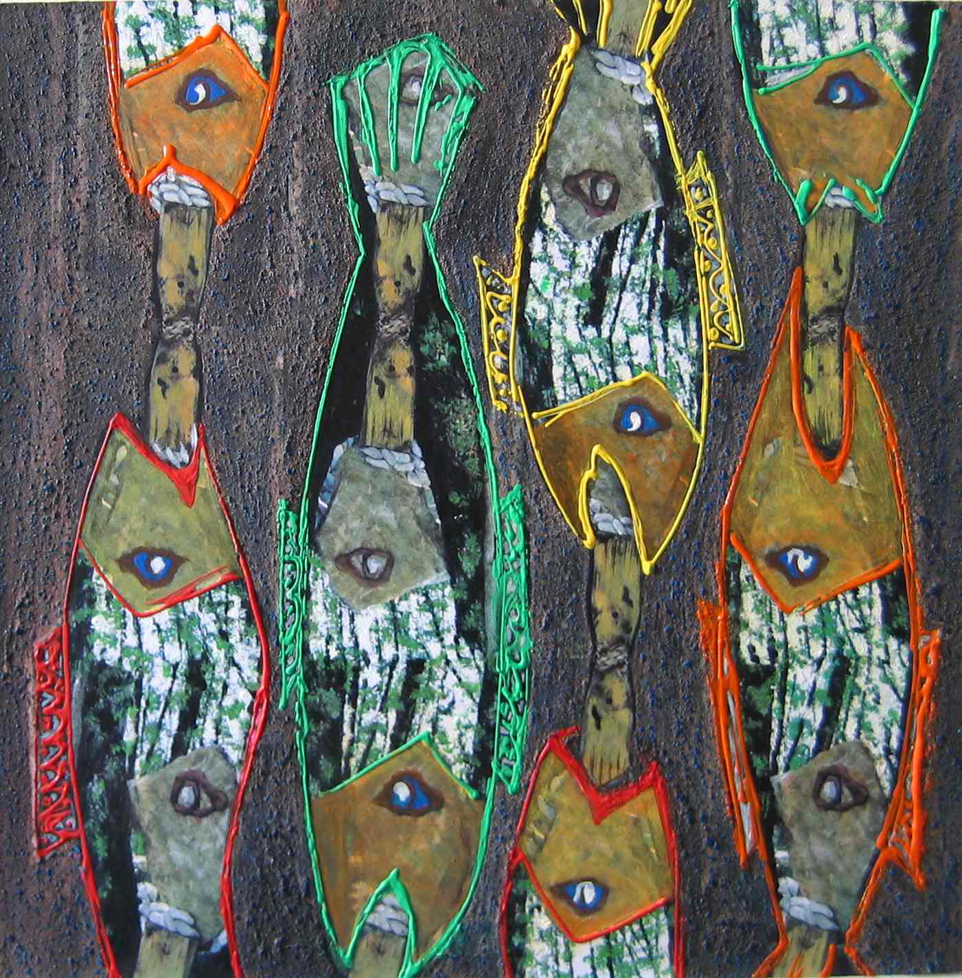 Sculptures terre et techniques mixtes.