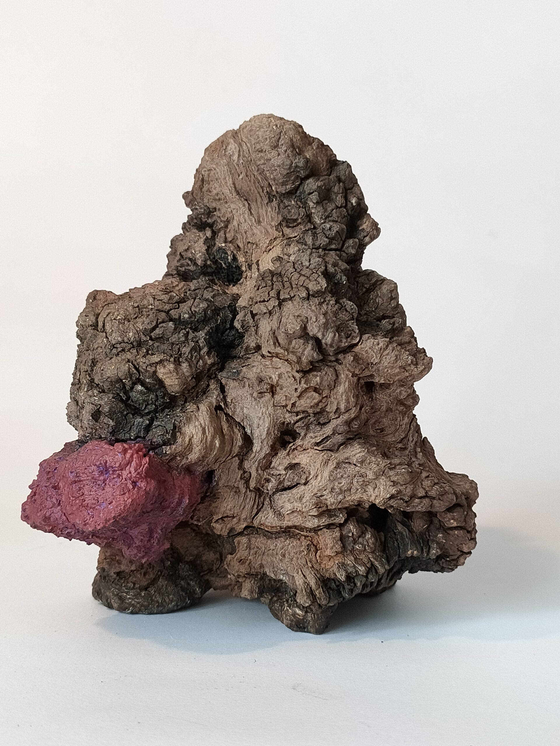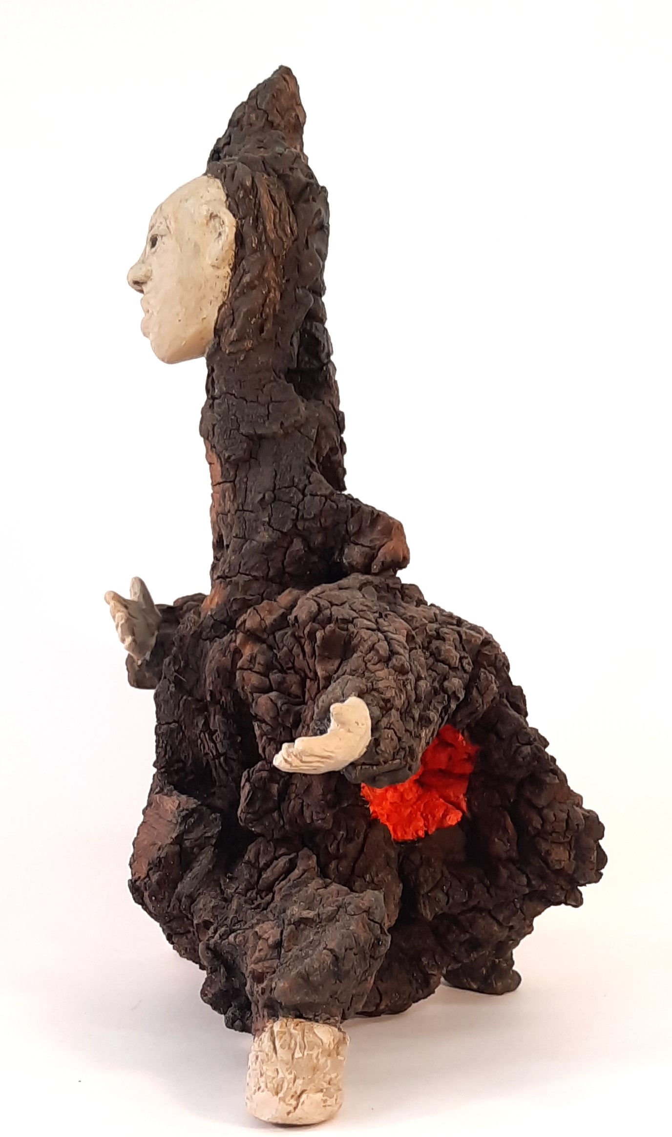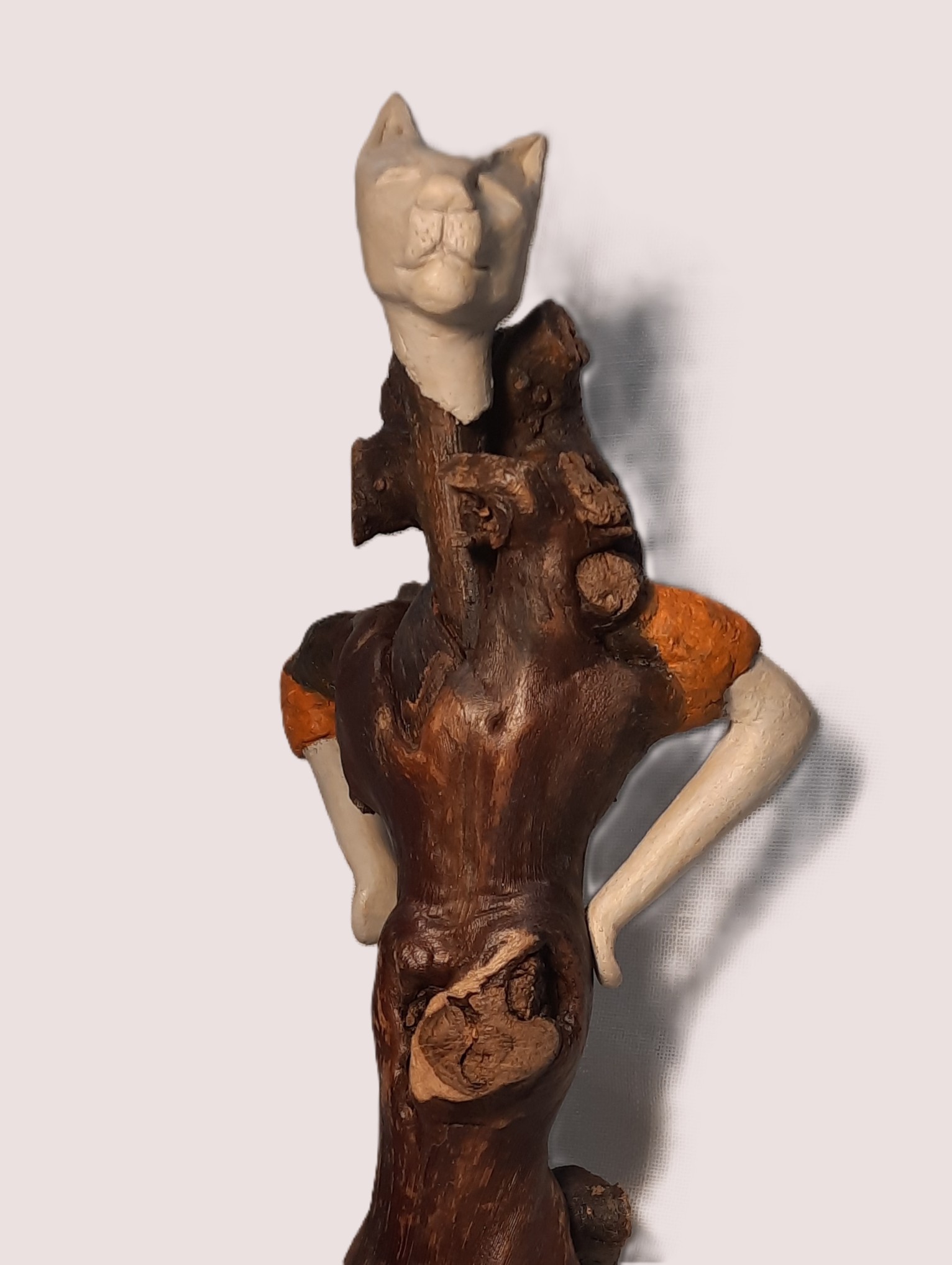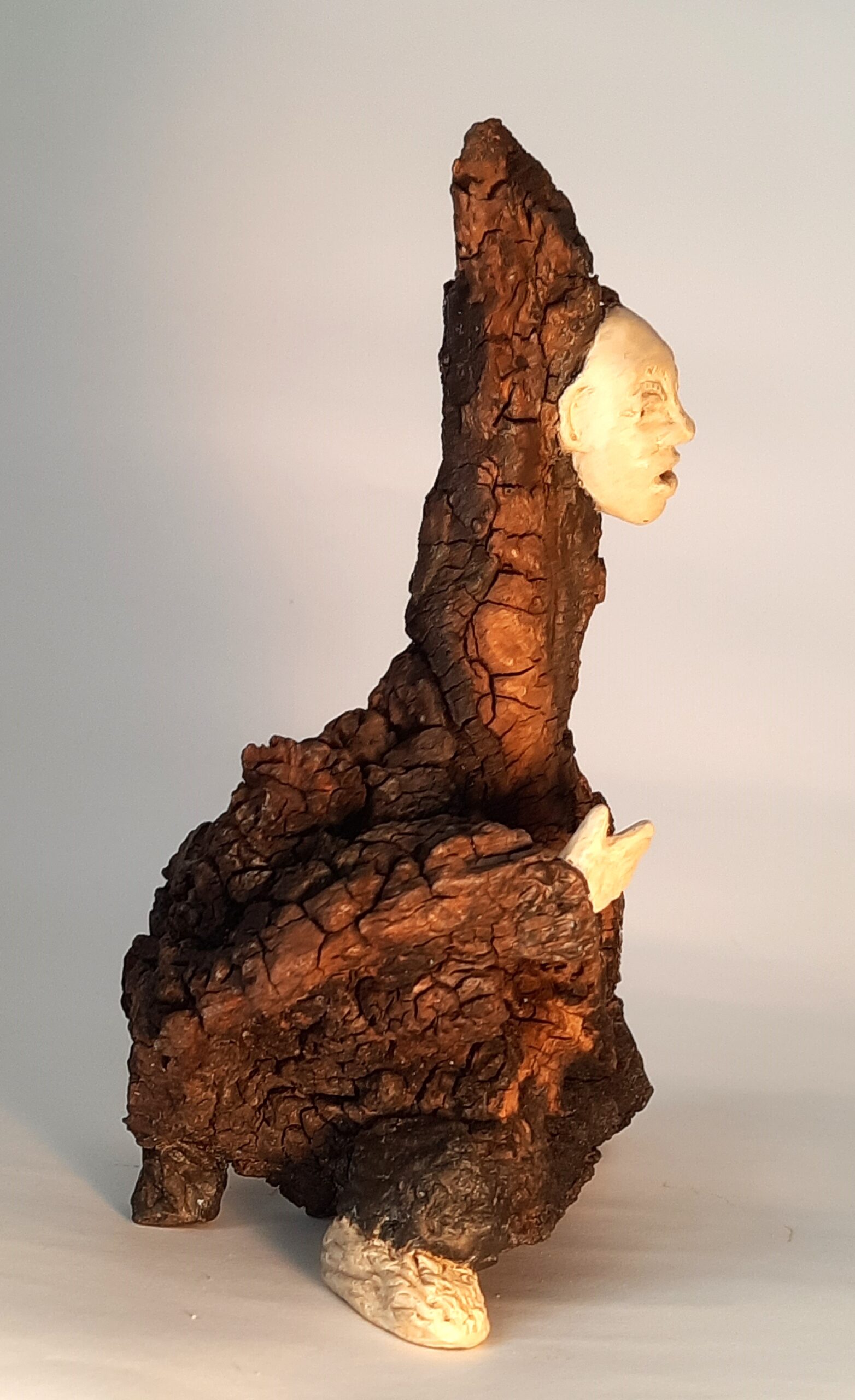Bois sec, terre sans cuisson, pâte à réparer, acrylique, vernis.