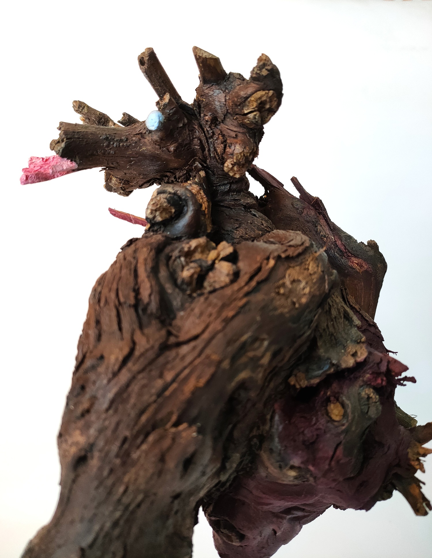 Cep de vigne, métal, laiton, terre sans cuisson, bois, liège, acrylique, vernis.